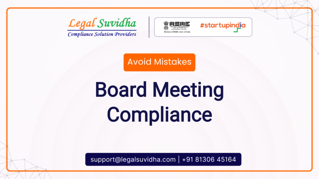 Board Meeting Compliance includes resolutions and minutes. Learn about secretarial compliance with company law and avoid mistakes. As a founder or business owner in India, you understand the importance of adhering to company law compliance. However, many entrepreneurs and startups often overlook the significance of board meeting compliance, which can lead to severe consequences. In this article, we will delve into the world of board meeting compliance, exploring common mistakes, consequences, and the correct approach to ensure your company remains compliant.